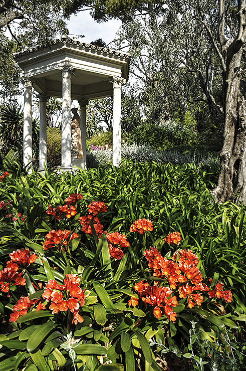 Tempietto e fiori rossi